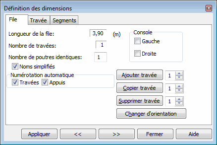 Les boutons suivants sont disponibles dans la boîte de dialogue : Ajouter travée, Copier travée et Supprimer travée.