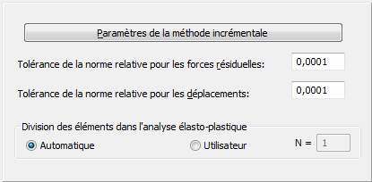 Sélectionnez l'option Utilisateur pour saisir le nombre de divisions des éléments du calcul dans le champ N =. Ces valeurs sont définies sur la longueur des éléments de type barre et le logiciel affecte à ces éléments une section aux paramètres élasto-plastiques.