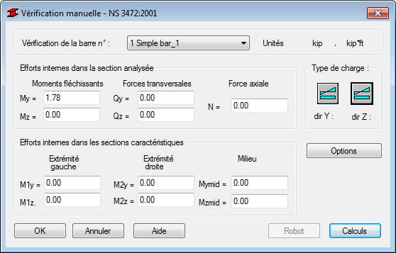 Pour effectuer la vérification d’une barre de structure soumise à l’action de forces internes définies par l’utilisateur, suivez la procédure ci-dessous :