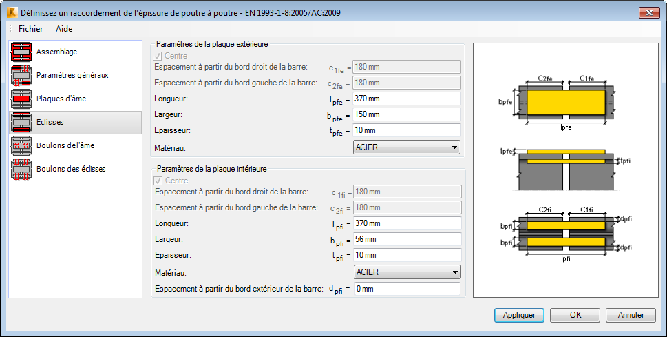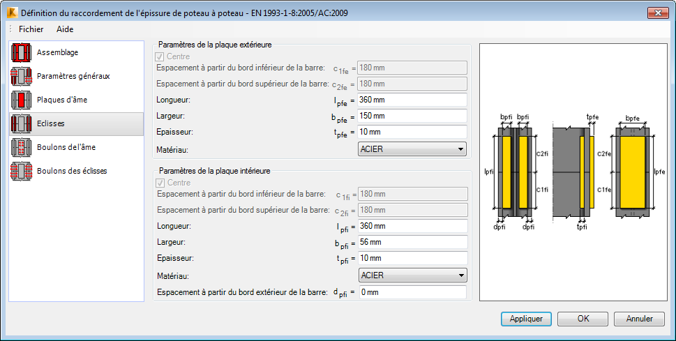 - Eclisses de droite et Eclisses de gauche pour les raccordements de l'épissure de poteau à poteau