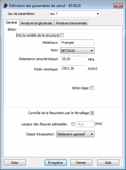 Au bas de la boîte de dialogue, l'option de contrôle d'armature (EC2 4.4.2.3) permet de vérifier la fissuration d'armature.