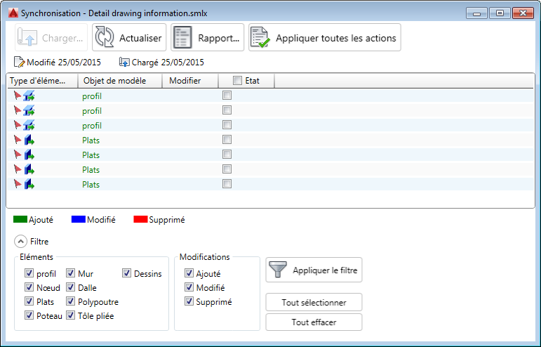 La synchronisation est un processus qui vous permet de mettre à jour vos modifications à l'aide du format SMLX, sans avoir à réimporter la structure entière.