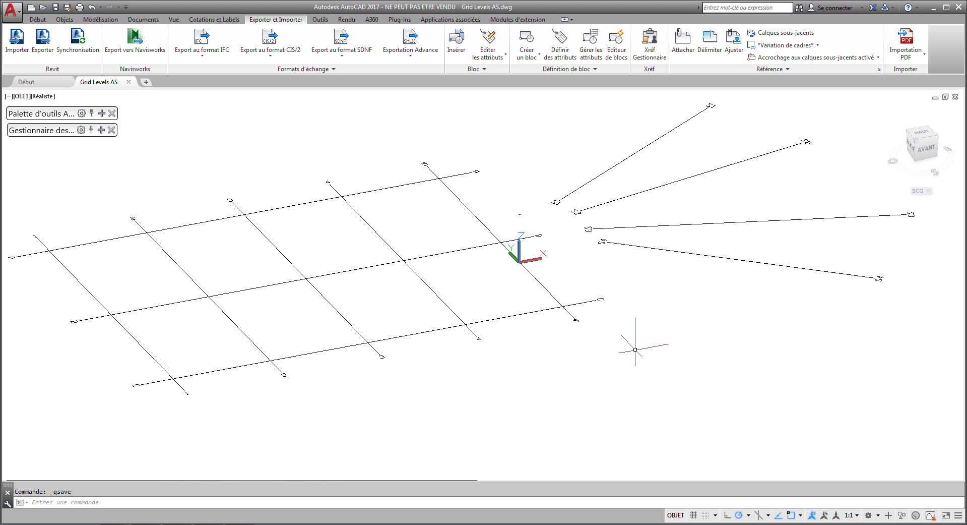 Si le modèle est importé dans Advance Steel, il y aura uniquement un quadrillage, créé dans la coordonnée Z=0 du SCG (niveau de base) :