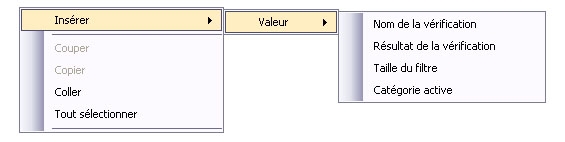 La partie supérieure comporte un éditeur HTML WYSIWYG standard. Elle est suivie d'une zone où vous pouvez saisir le corps du message, composé de texte, d'images, d'hyperliens, de tableaux et de détails permettant à l'utilisateur d'identifier les raisons de l'échec d'une vérification donnée. Le texte entouré des symboles % est dynamique. Il sera ensuite remplacé par les valeurs réelles de la vérification dans Results Browser. Vous pouvez ajouter du texte dynamique en cliquant avec le bouton droit de la souris dans le corps et en choisissant une valeur de l'option Insérer.