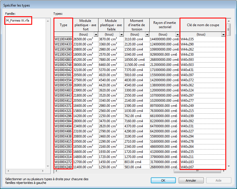 Utilisez le mécanisme qui implique une correspondance de section de 1 à 1 entre la famille Revit et la table Advance Steel et entre le type de profil Revit et le nom de section Advance Steel pour des résultats plus précis et cohérents.