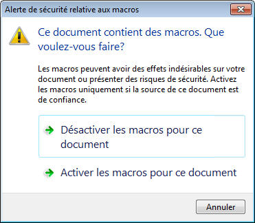 -  Macros - Lorsqu'elles sont exécutées sur des dossiers, vous risquez de recevoir pour chaque fichier un message de ce type :