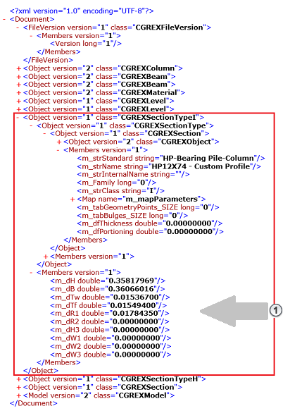 Les profils personnalisés sont automatiquement exportés en tant que profils dynamiques ; la mise en correspondance n'est pas nécessaire. Les profils personnalisés sont stockés dans le fichier .smlx sous CGREXSectionType :