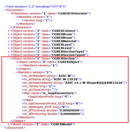 - Si le profil en acier fait partie d'une famille en acier de construction standard (il possède un identifiant de nom de famille et un identifiant de nom de coupe), le processus d'exportation transfert ce profil en tant que profil standard. Voir Mise en correspondance des sections fondée sur la famille Revit.