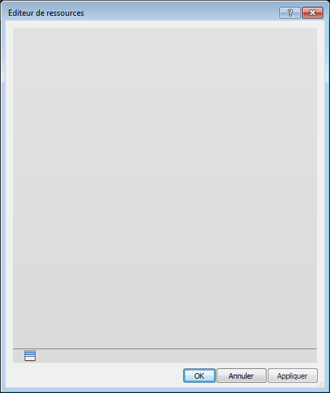 L'Editeur de ressources s'ouvre et ne contient aucune ressource.