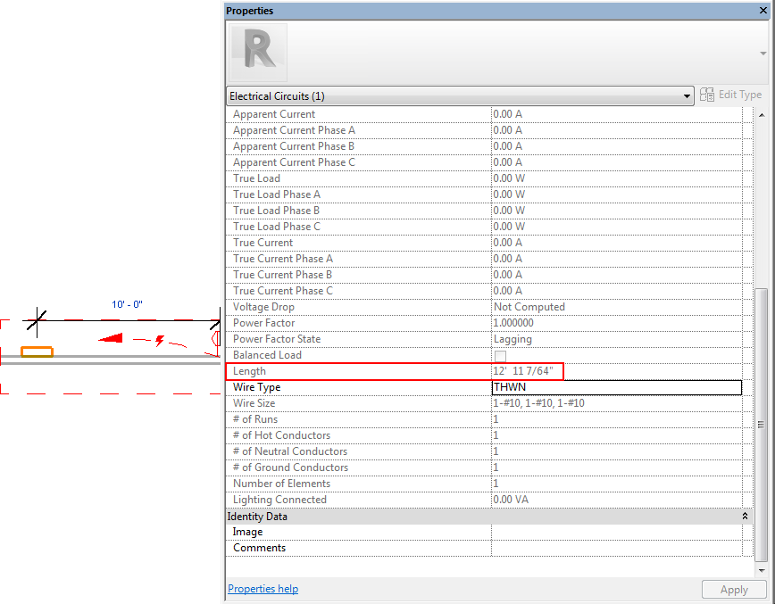 La longueur totale des fils d'un circuit est calculée et affichée en tant que valeur de longueur dans la palette Propriétés.