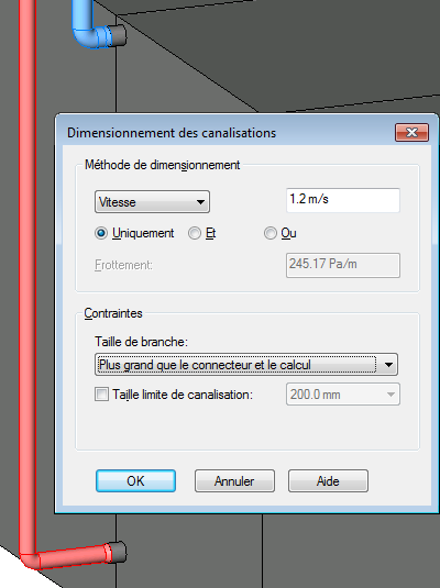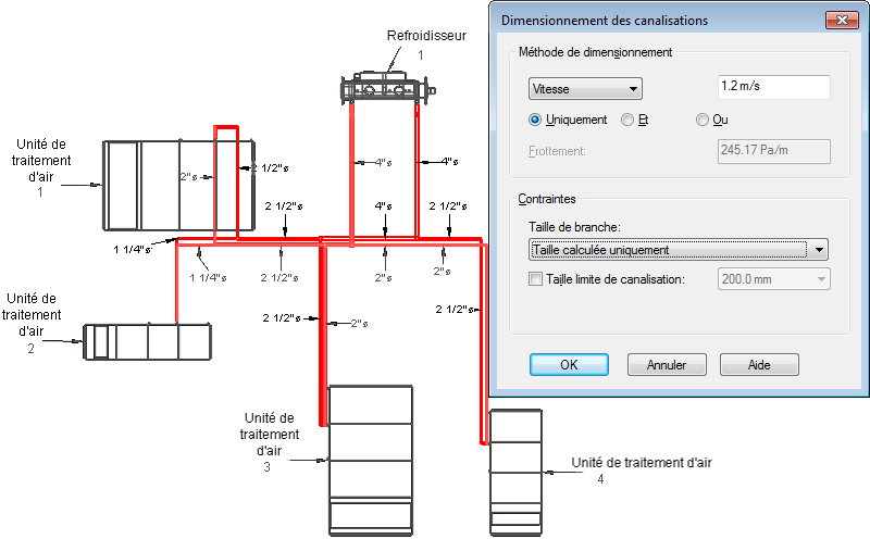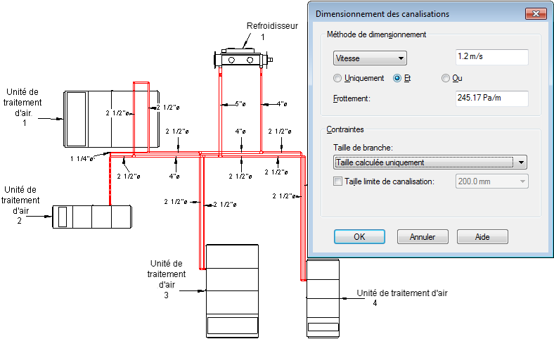 Les images suivantes montrent les résultats des diverses méthodes de dimensionnement de canalisation hydraulique.