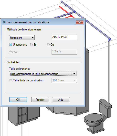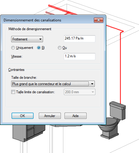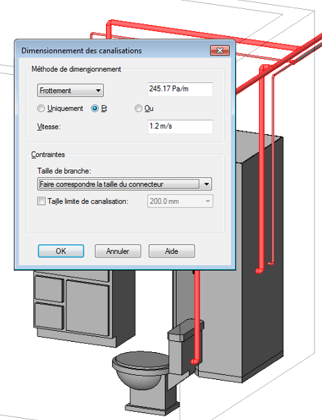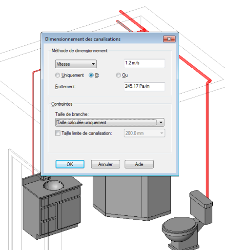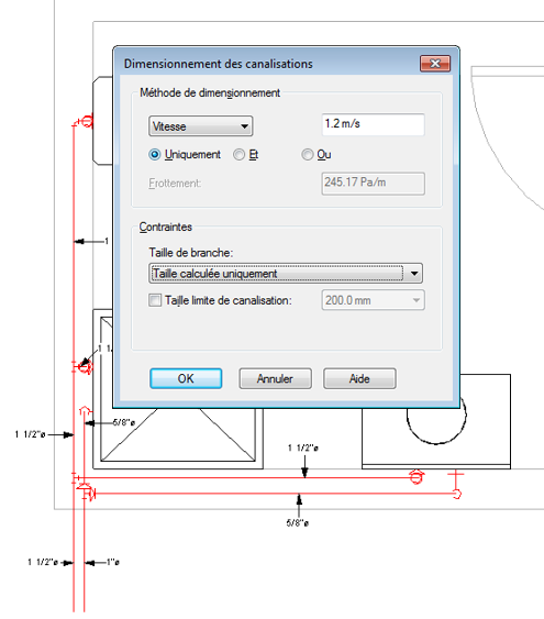 Les images suivantes montrent les résultats des diverses méthodes de dimensionnement de canalisation.