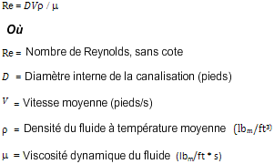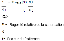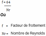 | Facteur de frottement | Le facteur de frottement utilisé dans l'équation de Darcys est calculé en fonction de l'état du flux.