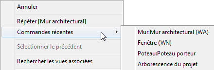 - Cliquez avec le bouton droit de la souris dans le dessin et choisissez Commandes récentes