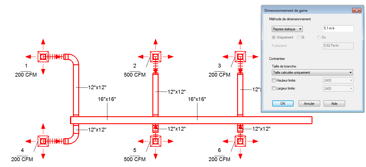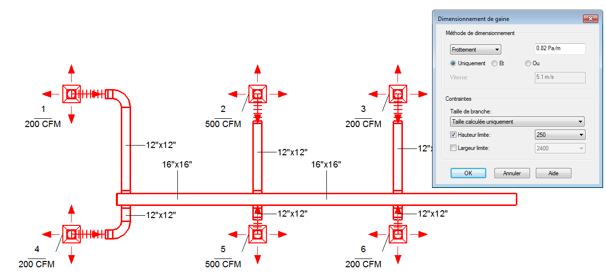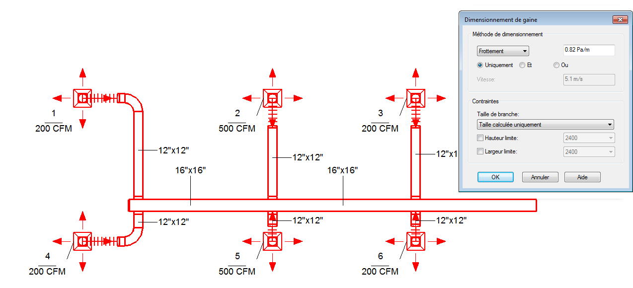 Les images suivantes montrent les résultats des diverses méthodes de dimensionnement de gaine.