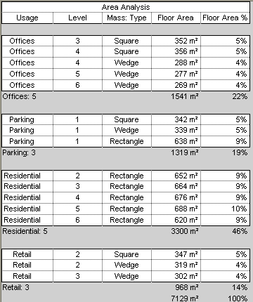 Vous avez conçu des volumes afin d'explorer un modèle conceptuel pour un bâtiment. Vous souhaitez analyser la répartition des utilisations de chaque étage du bâtiment afin de déterminer la combinaison la plus économique ou la plus rentable.