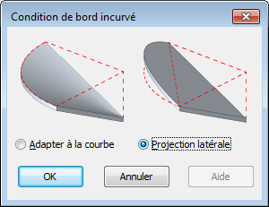 - Sélectionnez Adapter à la courbe pour obtenir une surface inclinée ou Projection latérale pour obtenir une surface plane.
