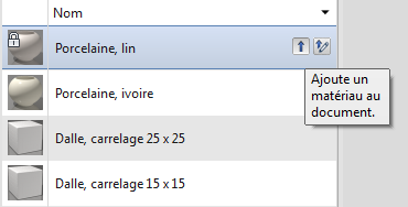 Pour ajouter un matériau au projet en cours, commencez par rechercher le matériau dans une bibliothèque existante, puis utilisez l'une des méthodes suivantes :