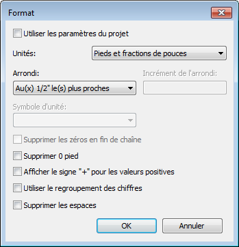 L'option Utiliser les paramètres du projet est sélectionnée par défaut. Ceci signifie que la valeur s'affiche en fonction du paramètre Unités choisi pour le projet.
