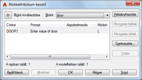 Felsorolja az aktuális rajzban található összes, attribútummal rendelkező blokkot. Jelölje ki azt a blokkot, amelynek attribútumait módosítani szeretné.