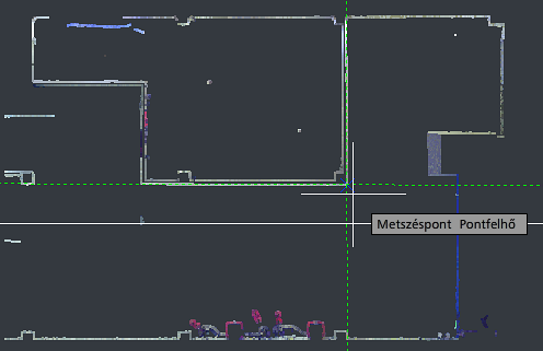 - A metszősík objektummal metszett pontfelhőszakaszok felismert metszetvonalainak metszőpontjához raszterez. Nagyítással javíthat a metszéspont pontosságán.