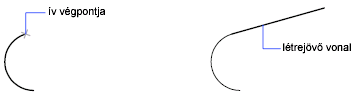 Közvetlenül azután, hogy létrehozott egy vonalat vagy egy ívet, elkezdhet megrajzolni egy olyan ívet, amely az előzőt egyik végpontjában érinti: ehhez indítsa el az ÍV parancsot, és az „Adja meg a kezdőpontot” utasításnál nyomja le az Enter billentyűt. Az új ívnek csak a végpontját kell megadnia.
