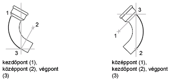 Ívet létrehozhat a kezdőpont, a középpont és egy harmadik, a végpontot megadó pont segítségével.