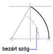 A bezárt szög meghatározza az ív végpontját. Használja a KezdőP, VégP, Szög módszert, ha mindkét végpont ismert, de nem tudja az ív középpontját.