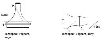 Ívet létrehozhat a kezdőpont, a végpont és egy sugár segítségével.