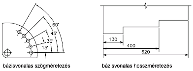 Hossz-, szög- vagy koordinátaméretet hoz létre az előző vagy a kijelölt méretezés alapvonalától kiindulva.