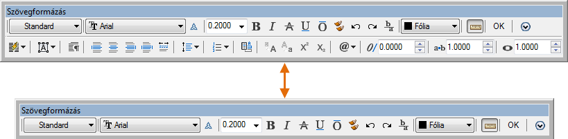 A Szövegformázás eszköztár megjelenését szabályozza. Ez a beállítás állítja be az MTEXTTOOLBAR rendszerváltozót. (Egysoros szöveg esetén nem érhető el.)