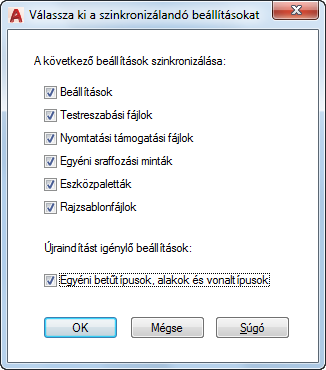 Megjeleníti a Válassza ki a szinkronizálni kívánt beállításokat párbeszédpanelt, ahol kiválaszthatja a szinkronizálni kívánt beállításokat.