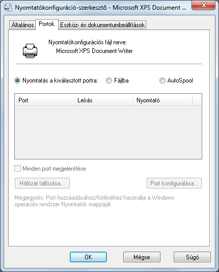 A rendelkezésre álló helyi és hálózati portok listáját jeleníti meg. Ha a port egy hálózati port, a hálózati nyomtató neve is megjelenik.