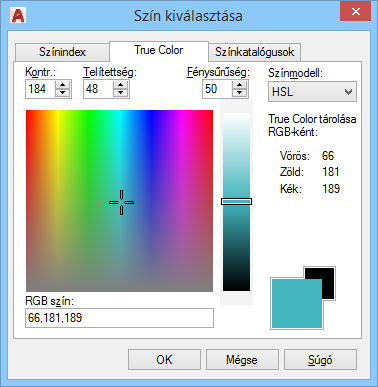 True Color lap (Szín kiválasztása párbeszédpanel)