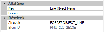 Ha a kiválasztott objektumhoz vagy az azonos típusú objektumokhoz kapcsolódó menüelemeket szeretné beilleszteni, akkor adja meg az OBJECT_objektumnév vagy OBJECTS_objektumnév álnevet. Az objektumnév szövegének érvényes objektumnévnek kell lennie, és egyeznie kell annak az objektumnak a DXF™ kód 0 értékével, amelyhez a helyi menüt meg szeretné jeleníteni. Ha például azt szeretné, hogy a helyi menü elemei akkor jelenjenek meg, amikor egy VONAL objektum van kiválasztva, használja az OBJECT_VONAL álnevet.