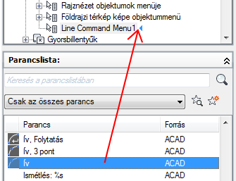 Ha az aktív parancshoz kapcsolódó menüelemeket szeretné beilleszteni egy helyi menübe, akkor adja meg a COMMAND_parancsnév álnevet. A parancsnév szövege bármilyen érvényes parancs neve lehet. Ha például azt szeretné, hogy a helyi menü elemei akkor jelenjenek meg, amikor a VONAL parancsot használja, adja meg a COMMAND_VONAL álnevet.