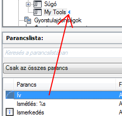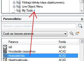 A Parancslista területről húzza a helyi menühöz hozzáadni kívánt parancsot az <fájlnév> testreszabási beállításai ablaktáblára.