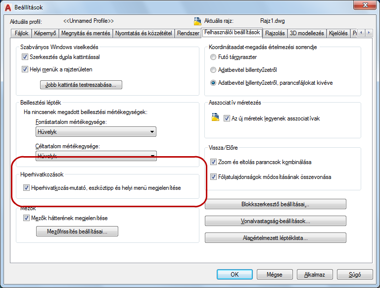 A Beállítások párbeszédpanel Felhasználói beállítások lapján engedélyezze a hiperhivatkozás adatainak megjelenítését.