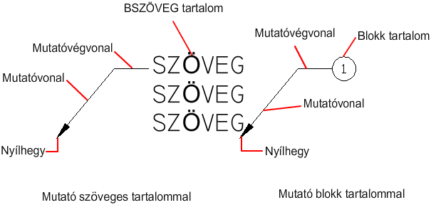 A mutató objektum olyan vonal vagy spline, amelynek egyik végén nyílfej, a másikon pedig bekezdéses szöveg objektum vagy blokk található.