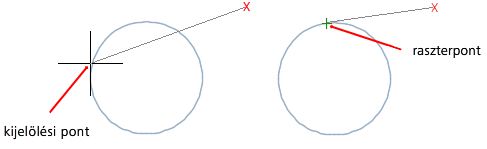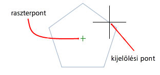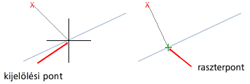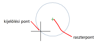 A tárgyraszterkövetéssel a mutató követni tudja az aktuális tárgyrasztermódokon alapuló illesztési útvonalakat a pontok parancsban történő megadásakor. (AUTOSNAP rendszerváltozó)