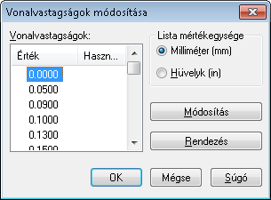 Meghatározza a mértékegységeket, amelyekkel a vonalvastagságok megjelenítésre kerülnek.