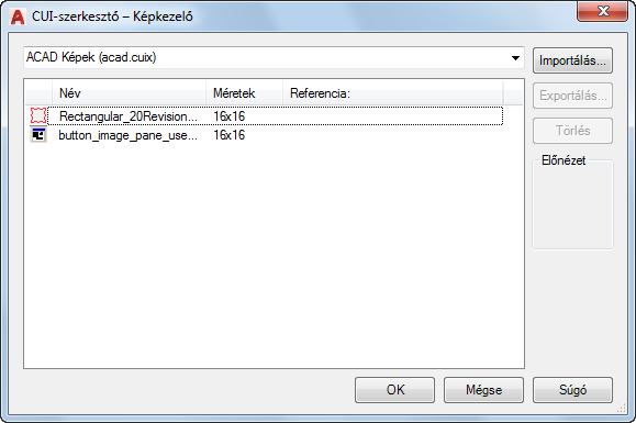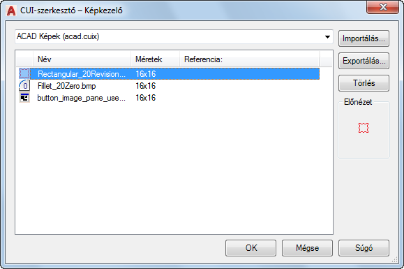 A parancsok egyéni képei importálhatók és exportálhatók.