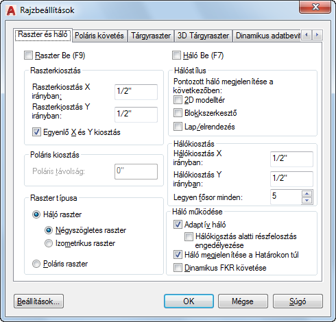 Beállítja a raszter növekményes távolságot, ha a Raszter típusa és stílusa pont alatt a Poláris raszter ki van választva. (POLARDIST rendszerváltozó)