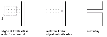 Bármely objektumhoz igazítva elmetszhet, illetve meghosszabbíthat egy objektumot a térben attól függetlenül, hogy az objektumok egy síkon vannak-e vagy párhuzamosak-e a vágó- vagy hátárolóélekkel. A METSZ és az ELÉR parancsoknál használja a Vetítés és az Él opciókat a metszés vagy a meghosszabbítás három lehetséges vetülete közül az egyik kijelölésére: