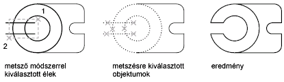 Bármely objektum lehet egyidejűleg az egyik vágóél és az elmetszésre kerülő objektumok egyike is. Az alábbi ábrán látható lámpafoglalat esetén például a kör a szerkesztővonalak vágóéleként szolgál, ugyanakkor saját maga is elmetszésre kerül.