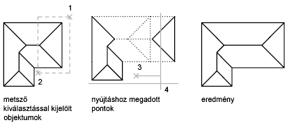 A NYÚJT paranccsal áthelyezi azon objektumok végpontjait, amelyek egy metsző kijelölő ablakon belül vagy azt metszve fekszenek.