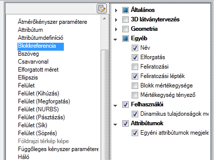 Blokkreferenciák felhasználói tulajdonságai és attribútumai megjelenítésének vezérlése