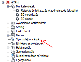 A Gyorstulajdonságok palettán megjelenő tulajdonságok testreszabhatók.