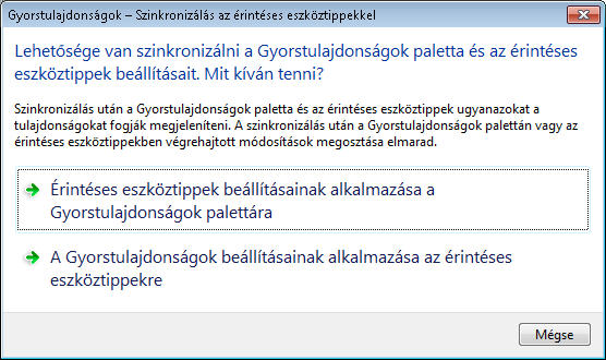 A Gyorstulajdonságok és az érintéses eszköztippek szinkronizálása
