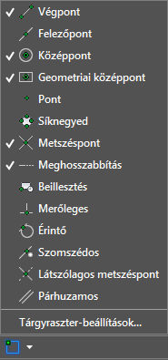 Amennyiben egy vagy több tárgyrasztert ismétlődően kell használnia, bekapcsolhatja a futó tárgyrasztert, amely az összes további parancsban megmarad. Futó tárgyraszterként megadhatja például a Végpont, Felezőpont és Középpont beállításokat.